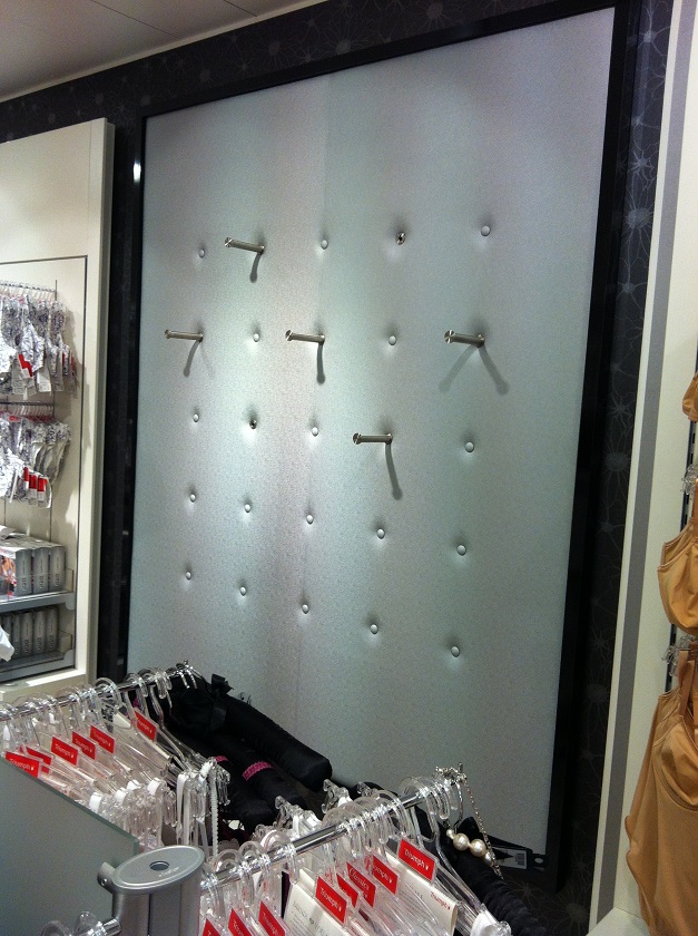 Luxus Wand Stoffbespannung. Fächer mit beleuchtung, seitliche stripes und stoffabdeckungen sind angebracht. Doch edle textilien an der wand können auch die eigenen.